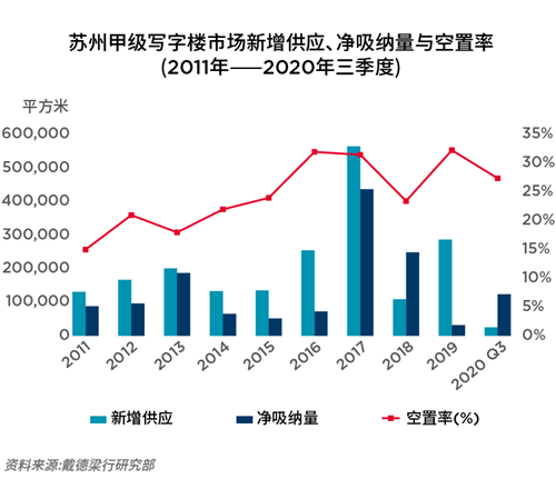 2020年,蘇州市政府提出了10條扶持中小企業(yè)的政策,幫助企業(yè)渡過(guò)難關(guān)。短期內(nèi),蘇州寫(xiě)字樓市場(chǎng)將保持平穩(wěn)。長(zhǎng)期來(lái)看,現(xiàn)有寫(xiě)字樓項(xiàng)目紛紛嘗試和探索提高租戶服務(wù)質(zhì)量的方法,以期增加其市場(chǎng)競(jìng)爭(zhēng)力。這些辦公環(huán)境的變革將支持周邊地區(qū)的商業(yè)復(fù)蘇,也加深了業(yè)主與入駐企業(yè)之間的關(guān)系。