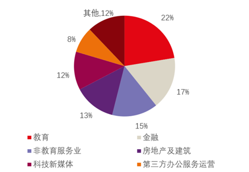 分行業(yè)看,在線教育行業(yè)成為2020年需求最旺盛的行業(yè)之一,其甲級市場的成交面積占比高達22%。疫情的沖擊不改人們對教育的熱情,資本的推動更刺激了在線教育的大幅擴張。此外,金融業(yè)、非教育服務業(yè)、房地產(chǎn)及建筑、科技新媒體等行業(yè)都有活躍表現(xiàn)。金融業(yè)中的保險公司不斷擴張代理人,繼續(xù)催生大面積成交;專業(yè)服務業(yè)中的律師事務所較為突出,這包括受注冊制背景下企業(yè)上市需求上升以及疫情沖擊之下的經(jīng)濟類訴訟增多等影響。