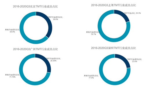 房訊網(wǎng)訊 據(jù)戴德梁行市場(chǎng)報(bào)告指出,TMT行業(yè)過去五年在寫字樓租賃市場(chǎng)扮演了重要角色。數(shù)據(jù)顯示,從2016年至2020年,TMT行業(yè)在北上廣深四個(gè)一線城市寫字樓租賃占比分別達(dá)到36%、20.3%、28.3%及23%。