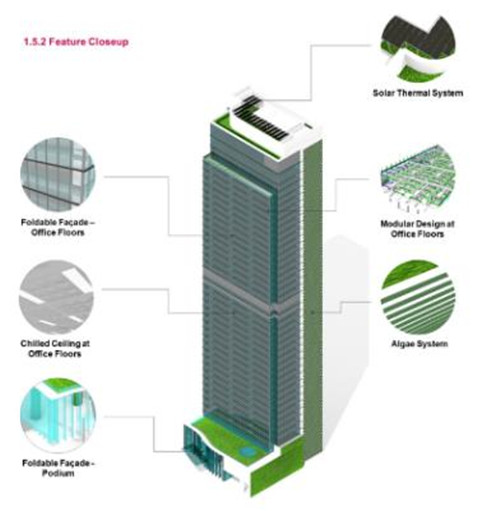 這座零碳商業(yè)塔樓高230米,擁有超過(guò)4,250平方米的綠色空間和花園,廣泛的綠色空間網(wǎng)絡(luò)系統(tǒng)在場(chǎng)地面積上創(chuàng)造了350%的綠化率。我們探索先進(jìn)技術(shù)和材料,在設(shè)計(jì)中包含了超過(guò)40種不同的能源系統(tǒng),生產(chǎn)的能源足以供應(yīng)建筑使用。根據(jù)設(shè)計(jì),這一高性能建筑將于建成8年后實(shí)現(xiàn)碳中和目標(biāo)。