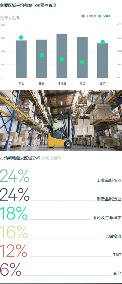 市場(chǎng)延續(xù)搬遷需求釋放的主要趨勢(shì),季度占比超六成。行業(yè)需求方面,工業(yè)品制造業(yè)以24%占比位居租賃需求首位。算力和人工智能的突破性發(fā)展推動(dòng)集成電路行業(yè)的向好態(tài)勢(shì),相關(guān)企業(yè)租賃需求保持活躍,季度錄得多家芯片設(shè)計(jì)企業(yè)和半導(dǎo)體元件企業(yè)在張江升級(jí)搬遷。同時(shí)也錄得裝備制造企業(yè)落址松江科技城。汽車消費(fèi)端的政策利好和回暖推動(dòng)汽車相關(guān)產(chǎn)業(yè)鏈企業(yè)租賃需求的進(jìn)一步增加,季度錄得整車企業(yè)需求,如奔馳在金橋設(shè)立研發(fā)中心;亦不乏錄得內(nèi)外資汽車零部件企業(yè),推動(dòng)消費(fèi)品制造業(yè)以24%的占比位列季度第二。辦公研發(fā)一體的生命科學(xué)園綜合體新項(xiàng)目的交付為制藥企業(yè)提供更多高品質(zhì)空間,推動(dòng)醫(yī)藥及生命科學(xué)以17%占比位列需求第三。