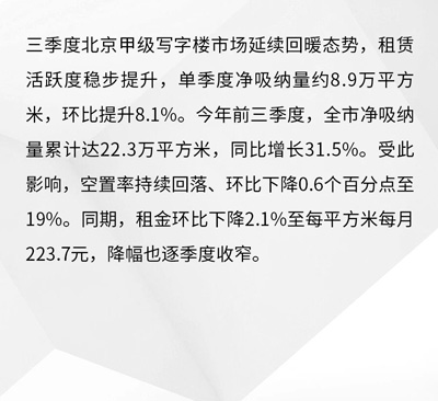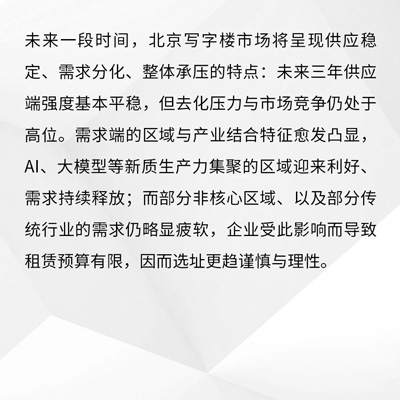 第一太平戴維斯(Savills)發(fā)布2025第三季度中國辦公樓市場回顧及展望。中國寫字樓市場仍映射出宏觀經(jīng)濟(jì)的兩速格局:新經(jīng)濟(jì)產(chǎn)業(yè)迅速擴(kuò)張,傳統(tǒng)行業(yè)持續(xù)承壓?萍寂c制造企業(yè)偏向自用或遷入產(chǎn)業(yè)園區(qū),傳統(tǒng)企業(yè)則縮減面積、尋求更高性價比。