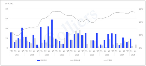 二季度深圳甲級(jí)寫字樓市場(chǎng)凈吸納量約7.2萬平方米,空置率微幅下調(diào)至27.4%,尋求改善辦公環(huán)境、降本增效的需求較為活躍,然而成交落定耗時(shí)較久,越來越多的業(yè)主高度關(guān)注續(xù)租率。