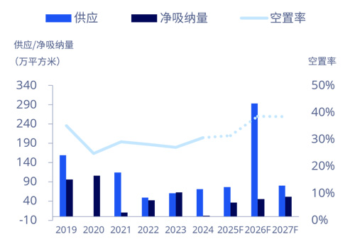 供應(yīng)、凈吸納量及空置率,2019-2027F