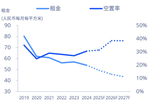 受到新增供應(yīng)影響,空置率將持續(xù)震蕩上行。但由于入市的新項目預(yù)租較好,空置率環(huán)比微降0.1個百分點至30.4%,相較2024年末降低0.3個百分點,但高位運行態(tài)勢未改。