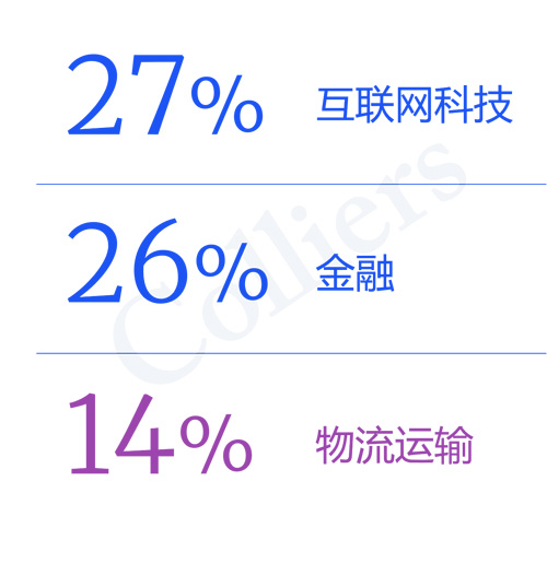 行業(yè)需求結(jié)構(gòu)方面,2025年第三季度互聯(lián)網(wǎng)科技、金融及物流運(yùn)輸成為前三大租賃需求來源。值得注意的是,部分頭部物流企業(yè)在本季度進(jìn)行大面積搬遷,導(dǎo)致物流運(yùn)輸首次進(jìn)入租賃成交行業(yè)前三位。