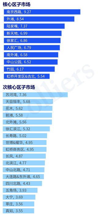 上海核心區(qū)與次核心區(qū)子市場
