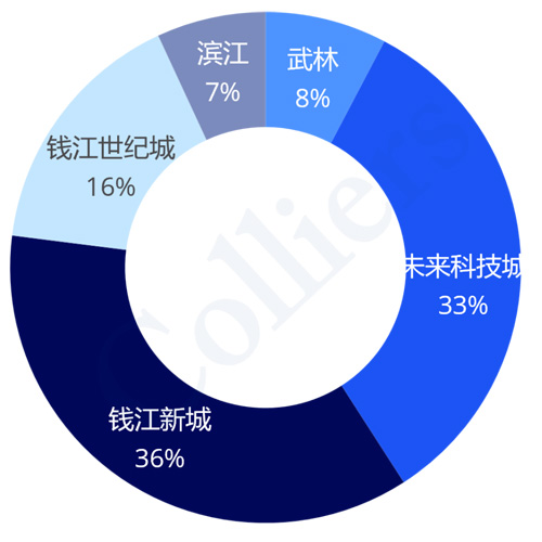 杭州各板塊寫字樓新增供應(yīng)占比(2026F-2028F)