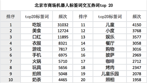 數據顯示,北京市商場機器人監(jiān)測的前20名交互熱詞里,和吃喝相關的占據8個,如吃飯、美食、火鍋、奶茶、餐廳等!耙路苯换ピ~躋身前4名,與今年國慶北京氣溫降低有關。假期首日最高氣溫僅20攝氏度左右,加上晝夜溫差加大,以及時不時趕來“過節(jié)”的大風天氣,讓人們對換季衣服的需求大幅增加。