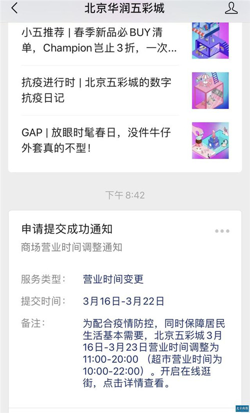 3月15日,北京華潤五彩城、暖山生活廣場、金源新燕莎MAII等商場均發(fā)布公告稱,從3月16日起,商場將延長營業(yè)時間。