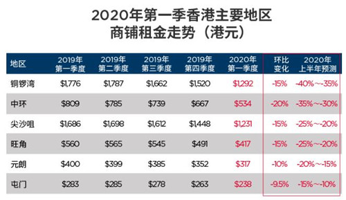 房訊網(wǎng)訊 據(jù)戴德梁行市場報告,新冠肺炎疫情令本已受挫的香港零售市況雪上加霜,中環(huán)、銅鑼灣、尖沙咀及旺角的商鋪租金環(huán)比下跌15-20%不等,非核心區(qū)如屯門及元朗的租金則環(huán)比下跌10%。