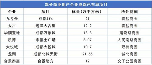 截止目前,不少知名商業(yè)地產(chǎn)企業(yè)都在成都進(jìn)行了商業(yè)體的布局,包括港資代表九龍倉、太古;內(nèi)資代表華潤、大悅城、龍湖、萬達(dá),以及外資代表凱德等。