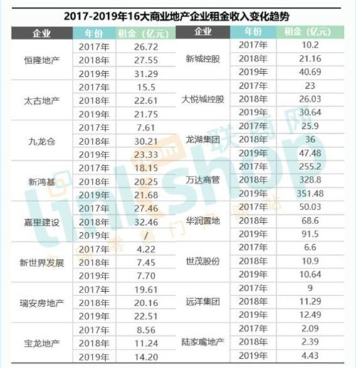 6月28日,聯(lián)商網(wǎng)零售研究中心發(fā)布《2020中國(guó)購(gòu)物中心租金趨勢(shì)報(bào)告》,2019年,16大商業(yè)地產(chǎn)企業(yè),租金收入最高的是萬(wàn)達(dá)商管,龍湖集團(tuán)以47.48億元租金收入上榜。