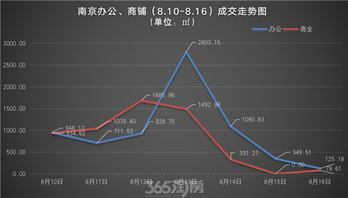 據(jù)南京網上房地產數(shù)據(jù),南京樓市上周(8月10日-8月16日)商業(yè)地產銷售市場共成交面積12520.91㎡,環(huán)比猛跌58.55%。其中辦公類產品成交6957.07㎡,環(huán)比下降53.03%,商鋪類產品成交5563.84㎡,環(huán)比下降63.86%。