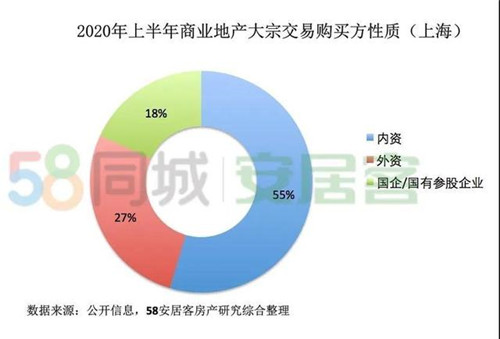 上半年部分城市的商辦類資產(chǎn)價值或被低估,疊加市場熱錢的增多,拉動商業(yè)地產(chǎn)大宗交易量熱度提升。據(jù)58安居客房產(chǎn)研究院的不完全統(tǒng)計,以上海為例,2020年上半年共錄得1億元以上大宗交易11宗,交易總額約264.07億元,依然穩(wěn)居全國大宗交易城市冠軍。11宗交易中,僅2宗發(fā)起或完成于一季度,其余9宗均發(fā)生或完成于二季度,其中4月和6月為成交高峰期。盡管部分項(xiàng)目或是受疫情影響導(dǎo)致交易推遲,但二季度上海大宗投資市場整體活躍度明顯上升。
