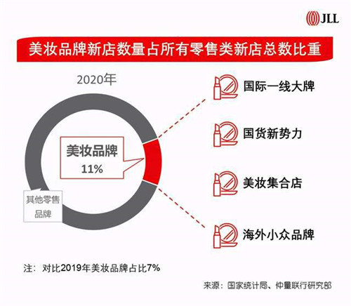 在仲量聯(lián)行追蹤觀察的100家上海優(yōu)質(zhì)購(gòu)物中心中,2020年美妝品牌新店數(shù)量占所有零售類新店總數(shù)比重約11%,較19年同比提升4個(gè)百分點(diǎn)。這背后的原因不言自明:對(duì)于年輕消費(fèi)者來(lái)說(shuō),化妝品消費(fèi)等同于剛需消費(fèi),是日常生活中必不可少的投入。