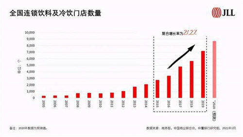 幾年前,由于店鋪數(shù)量有限,在很多城市,喝喜茶、奈雪の茶都需要找黃牛去排隊(duì)。而如今,Sevenbus、茶顏悅色等品牌已經(jīng)悄然崛起,不但頭部品牌快速下沉,占領(lǐng)各級(jí)市場(chǎng),在商業(yè)模式簡(jiǎn)單可復(fù)制、進(jìn)入門(mén)檻低等因素的推動(dòng)下,越來(lái)越多單品價(jià)格在10至20元的品牌加入了市場(chǎng)競(jìng)爭(zhēng)。據(jù)仲量聯(lián)行統(tǒng)計(jì),自2015年起,全國(guó)連鎖飲料及冷飲門(mén)店數(shù)量的年復(fù)合增長(zhǎng)率高達(dá)21.2%。尤其是在去年,高利潤(rùn)率引發(fā)資本入局以及外賣市場(chǎng)因疫情而火爆更是給茶飲咖啡品牌的急速擴(kuò)張?jiān)偬戆鸦,市?chǎng)競(jìng)爭(zhēng)因此加劇。