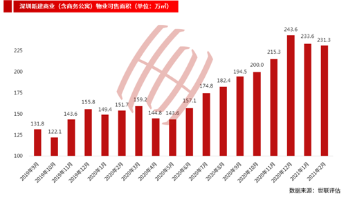 2月份,深圳新建商業(yè)物業(yè)(以商務公寓為主)可售面積為231.3平方米,環(huán)比下降1.0%。本指標顯示庫存壓力依然較大。