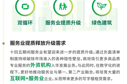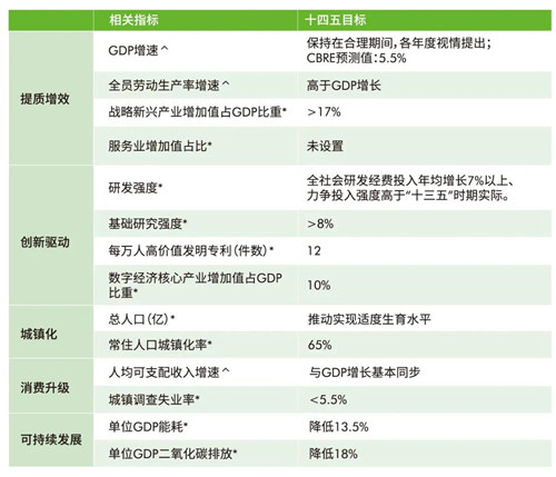 日前,國家“十四五”規(guī)劃綱要全文發(fā)布,再次強調(diào)了經(jīng)濟提質(zhì)增效、創(chuàng)新驅(qū)動發(fā)展、城鎮(zhèn)化和消費升級、可持續(xù)等重點議題。CBRE世邦魏理仕近日發(fā)表《中國“十四五”規(guī)劃解讀:2021-2025年國家發(fā)展目標及其對房地產(chǎn)市場的影響》,梳理未來五年中國主要經(jīng)濟發(fā)展指標和目標,并提出覆蓋寫字樓、零售物業(yè)、產(chǎn)業(yè)地產(chǎn)、物業(yè)投資等板塊發(fā)展的關(guān)鍵詞。
