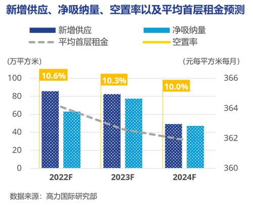 高力國際預(yù)計充沛的新增供應(yīng)將持續(xù)至2023年,今明兩年年均新增供應(yīng)面積或至84.2萬平方米;2023年全年新增供應(yīng)或?qū)⑦_(dá)82.6萬平方米。其中作為新興商圈的天府新區(qū),供應(yīng)端將在今明兩年發(fā)力,合計新增供應(yīng)面積或超50萬平方米。此后,預(yù)計2024年全市新增供應(yīng)將顯著回落。