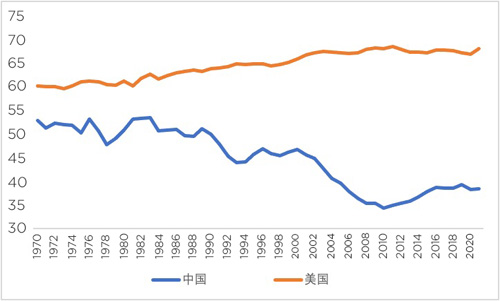 中美居民消費率走勢對比