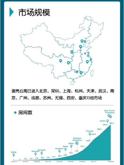 與整體營收增長相對應(yīng)的,就是蛋殼公寓入駐城市、運營房間數(shù)的持續(xù)擴張。根據(jù)招股書披露,截至2019年11月30日,蛋殼公寓已經(jīng)進入了全國13座主流一二線城市,管理運營的總房間數(shù)432,690間。