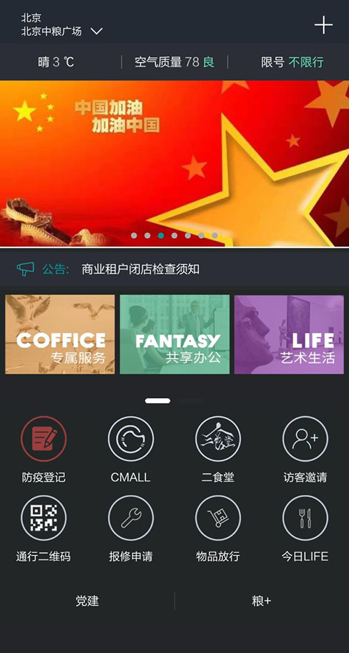 同時,作為觸達客戶的信息發(fā)布平臺,COFFICE還每日不斷對疫情防控進行宣傳。線上訂餐功能在為客戶提供安全保障和辦公便利的同時,使客戶更加了解所在樓宇目前的防控措施,增強復工的信心。