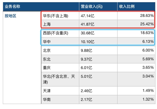 這一點在財報中也得到了體現(xiàn)。全部自營的上海地區(qū)、多達105家委管的華東地區(qū)合計貢獻了超過50%的收入。另外,委管數(shù)量較多的西部和華中地區(qū)合計收入占比近25%。