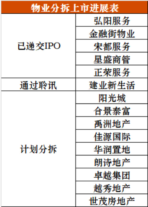 圖/物業(yè)分拆上市進展表
