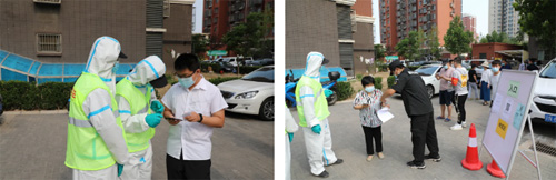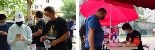 本次支援社區(qū)的五家企業(yè)志愿者們,主要負(fù)責(zé)核酸檢測(cè)點(diǎn)位的登記、人員疏導(dǎo)、解答居民的疑問(wèn)……為有序檢測(cè)提供后勤保障,雖然烈日當(dāng)頭讓人汗流浹背,但他們依然克服重重困難,堅(jiān)守在第一線。
