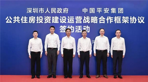 6月4日,深圳市政府、中國平安保險(集團)股份有限公司(以下簡稱“中國平安”)舉行《公共住房投資建設(shè)運營戰(zhàn)略合作框架協(xié)議》簽約儀式。深圳市委常委、市政府黨組成員楊洪,副秘書長徐松明,中國平安總經(jīng)理、聯(lián)席首席執(zhí)行官謝永林,首席投資執(zhí)行官陳德賢,華夏幸;鶚I(yè)股份有限公司(以下簡稱“華夏幸!)聯(lián)席董事長、首席執(zhí)行官吳向東等出席儀式。