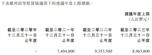 據(jù)公告,杭州昶寓及杭州康寓租賃協(xié)議下的建議年度(2021年度、2022年度、2023年度)上限總額分別為74048萬元、935.35萬元和896.38萬元。