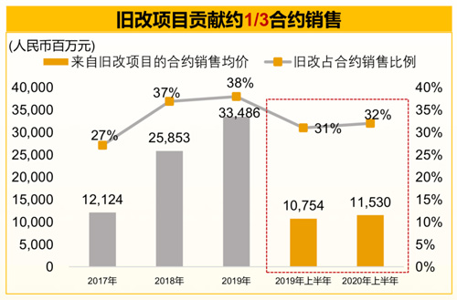 佳兆業(yè)首次在其財報中體現(xiàn),2020年上半年合約銷售金額的360億元,舊改項目貢獻(xiàn)銷售超三分之一,成為業(yè)績增長的一大亮點。