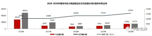 北京中原的數(shù)據(jù)顯示,2020年,廊坊市區(qū)商品住宅成交量價齊升,成交9693套,成交套數(shù)同比上漲2%;成交面積95萬㎡;成交均價為13262元/㎡,同比上漲5%;成交金額126億元,同比上漲3%。市區(qū)商品住宅供應(yīng)10954套,供應(yīng)套數(shù)同比上漲32%;供應(yīng)面積110萬㎡。
