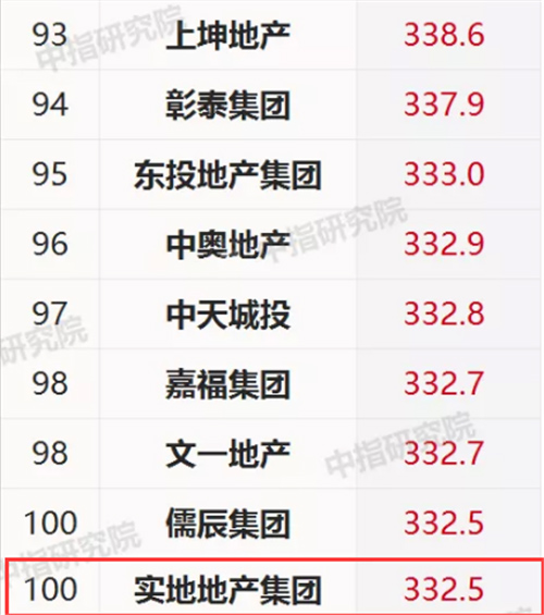 據(jù)克而瑞統(tǒng)計(jì),實(shí)地集團(tuán)2020年全口徑銷(xiāo)售額為257.4億元,剛好排名行業(yè)第100位。而在中指研究院的榜單中,實(shí)地集團(tuán)去年全年的銷(xiāo)售額為332.5億元,同樣排名第100位。
