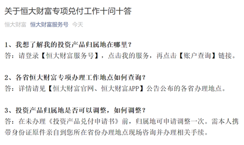 恒大財(cái)富發(fā)布專項(xiàng)兌付工作十問(wèn)十答