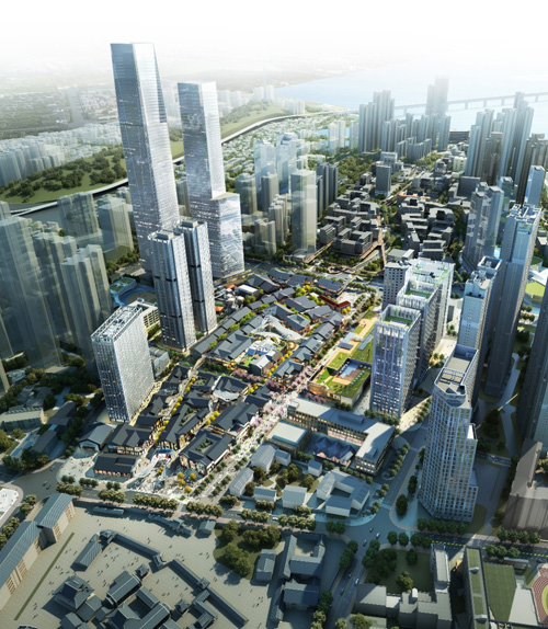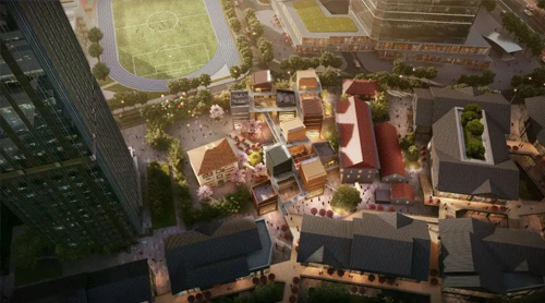 按照規(guī)劃,翠微路步行街將與遠(yuǎn)洋里商區(qū)統(tǒng)籌融合設(shè)計(jì),在街道端頭分別設(shè)置歸元寺寺前廣場(chǎng)與圣母堂文化廣場(chǎng);道路中段與商業(yè)建筑前區(qū)空間整體設(shè)計(jì),并滲透至商區(qū)內(nèi)街。目前,從空中俯瞰鐘家村古城商貿(mào)區(qū)鸚鵡大道以西,遠(yuǎn)洋里17萬(wàn)方的低密度大型開放式商業(yè)街區(qū)已基本成型,荊楚風(fēng)格的深色梯形屋頂以連廊成片。