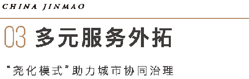 在基礎服務之上,構(gòu)建差異化的城市經(jīng)營服務體系,金茂服務圍繞居住空間、非住空間,聚焦市政環(huán)衛(wèi)空間運維、城市共建服務及資產(chǎn)運營、智慧城市等多個維度,打造資產(chǎn)盤活、會議服務等多種經(jīng)營業(yè)務,提高城市各類公共空間的運營水平,助力城市形象打造及政企合作,持續(xù)拓展城市運營服務力。