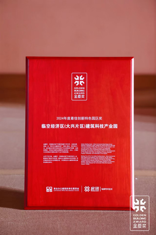 2024年12月11日,北京新航城發(fā)展公司受邀參加中國寫字樓產(chǎn)業(yè)園發(fā)展論壇第21屆年會及2024金廈獎·中國商業(yè)地產(chǎn)年度評選頒獎盛典,國際航空總部園項目其園區(qū)特色產(chǎn)業(yè)平臺-臨空區(qū)建筑科技產(chǎn)業(yè)園榮膺2024年度最佳創(chuàng)新特色園區(qū)獎。