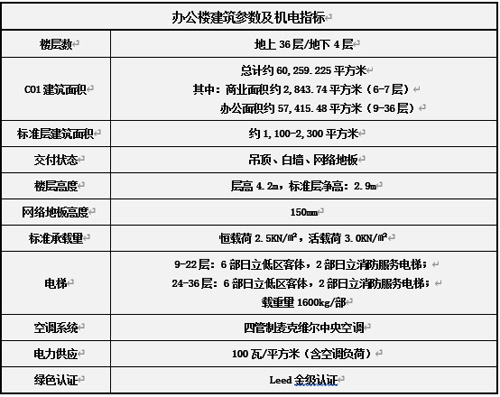 通州C01大廈由富力地產(chǎn)開發(fā),中銀投下屬子公司瑞成匯通公司持有,并聘請(qǐng)世界知名物業(yè)管理公司世邦魏理仕提供服務(wù)。項(xiàng)目占地6萬平方米,建筑面積60,215.25平方米,擁有36層,其中辦公區(qū)域占據(jù)主要空間,從第9層至第36層,每一層都充滿現(xiàn)代商務(wù)的活力與魅力。