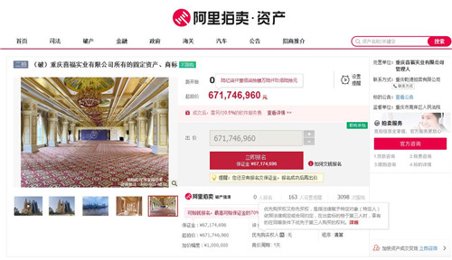 公告顯示,標(biāo)的物評(píng)估價(jià)839,683,700元,起拍價(jià)671,746,960元,保證金671,746,96元,加價(jià)幅度1000000元,起拍價(jià)、成交價(jià)均不包含包括任何稅費(fèi)價(jià)、淘寶平臺(tái)軟件服務(wù)費(fèi)等其他費(fèi)用。