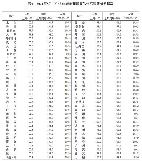 房訊網(wǎng)訊 9月15日,國家統(tǒng)計局發(fā)布70個大中城市商品住宅銷售價格變動情況,數(shù)據(jù)顯示,8月份,各地全面落實房地產(chǎn)長效機制,持續(xù)加強房地產(chǎn)市場調(diào)控,70個大中城市商品住宅銷售價格環(huán)比、同比漲幅總體延續(xù)回落態(tài)勢。