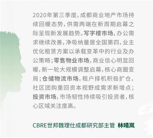 隨著成渝經(jīng)濟(jì)圈建設(shè)帶來的新一輪戰(zhàn)略機(jī)遇,城市擴(kuò)容、產(chǎn)業(yè)鏈升級(jí)、人才導(dǎo)入等逐步推進(jìn),成都商業(yè)地產(chǎn)的中長(zhǎng)期價(jià)值將被更多投資者看好。預(yù)計(jì)人民幣基金機(jī)構(gòu)以及自用為目的的投資者將持續(xù)活躍,核心區(qū)域現(xiàn)金流穩(wěn)定的寫字樓是投資者最為追捧的投資標(biāo)的。此外,如倉儲(chǔ)物流、學(xué)校教育地產(chǎn)等也備受關(guān)注。