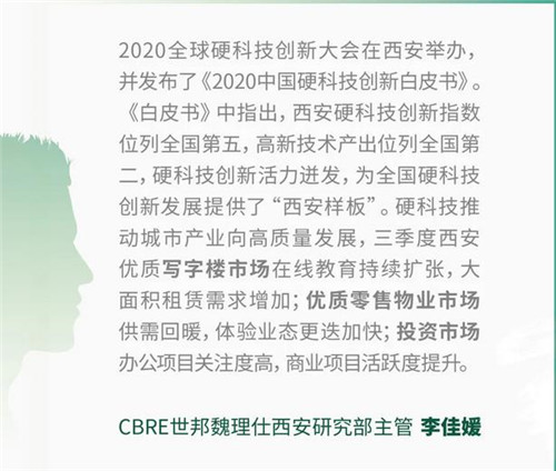 CBRE西安投資及資本市場主管郝亞文表示,“隨著國內(nèi)疫情的有效控制,投資者信心正逐步恢復(fù)。西安持續(xù)發(fā)揮人才優(yōu)勢,吸引越來越多北上廣深的機構(gòu)企業(yè)關(guān)注并設(shè)立西北總部。同時市場上積極活躍的酒店物業(yè)收購意愿也彰顯了對西安未來旅游市場的良好預(yù)期。在特殊的大環(huán)境下,第三季度成為經(jīng)濟復(fù)蘇的起點,相信第四季度會有更好的反彈和更多的投資機會!