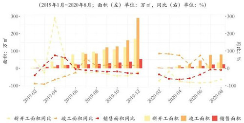 具體來看,固投方面,2020年1~8月,北京全市固定資產(chǎn)投資(不含農(nóng)戶)同比增長0.6%,增速由負轉(zhuǎn)正。其中,房地產(chǎn)開發(fā)投資增長5.7%。分行業(yè)看,科學研究和技術(shù)服務業(yè)增長89.4%,制造業(yè)增長80.5%。社會消費品零售方面,1~8月,全市實現(xiàn)社會消費品零售總額8150.4億元,同比下降14.1%。其中,限上批發(fā)零售業(yè)、住宿餐飲業(yè)網(wǎng)上零售額為2576.9億元,同比增長26.8%。辦公樓市場建設和銷售方面,1~8月,全市辦公樓新開工面積為34.4萬㎡,同比下降64.2%;辦公樓竣工面積為79.9萬㎡,下降6.4%;辦公樓銷售面積為23.3萬㎡,下降9.7%。