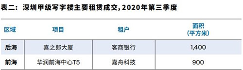 第三季度深圳甲級(jí)寫字樓投資市場沒有錄得大宗整購交易。
