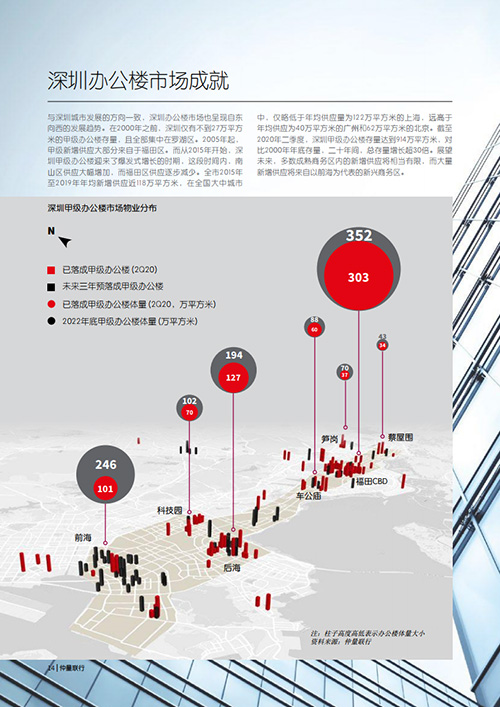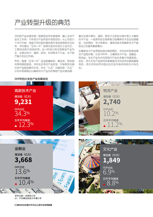 高新技術(shù)與金融兩大主導(dǎo)產(chǎn)業(yè)在深圳的空間布局上,呈現(xiàn)出核心商務(wù)區(qū)與新興商務(wù)區(qū)全面覆蓋的特點,也在很大程度上促進了核心商務(wù)區(qū)與新興商務(wù)區(qū)的錯位共同發(fā)展。其與“多中心”發(fā)展格局的契合意味著深圳辦公樓市場將延續(xù)供需兩旺的態(tài)勢。