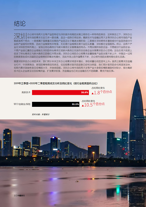 高新技術(shù)與金融產(chǎn)業(yè)受疫情影響相對較小,部分高新技術(shù)巨頭企業(yè)甚至還因疫情獲益,擴張需求較強,而金融業(yè)也已走出金融去杠桿的陰霾,需求開始反彈。仲量聯(lián)行預(yù)計來自這兩大主導(dǎo)產(chǎn)業(yè)的大量需求將涌向新興商務(wù)區(qū)。即便深圳市場面臨大量新增供應(yīng),供過于求的狀態(tài)中短期內(nèi)難以改變,但空置壓力估計不會進一步上升,而租金在短期內(nèi)仍將下行,在中長期則有望企穩(wěn)反彈。