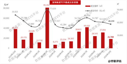 一手寫字樓市場:價量齊跌