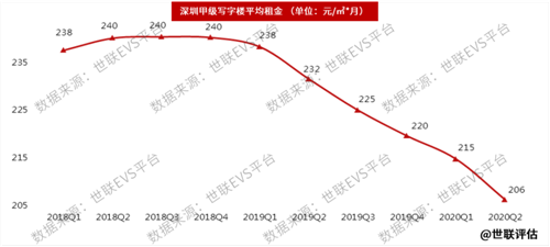 深圳商業(yè)性辦公用地供應(yīng)過剩,近年寫字樓供應(yīng)量足以滿足未來十年的需求,空置率及租金下跌幅度都位居四大一線城市之首。